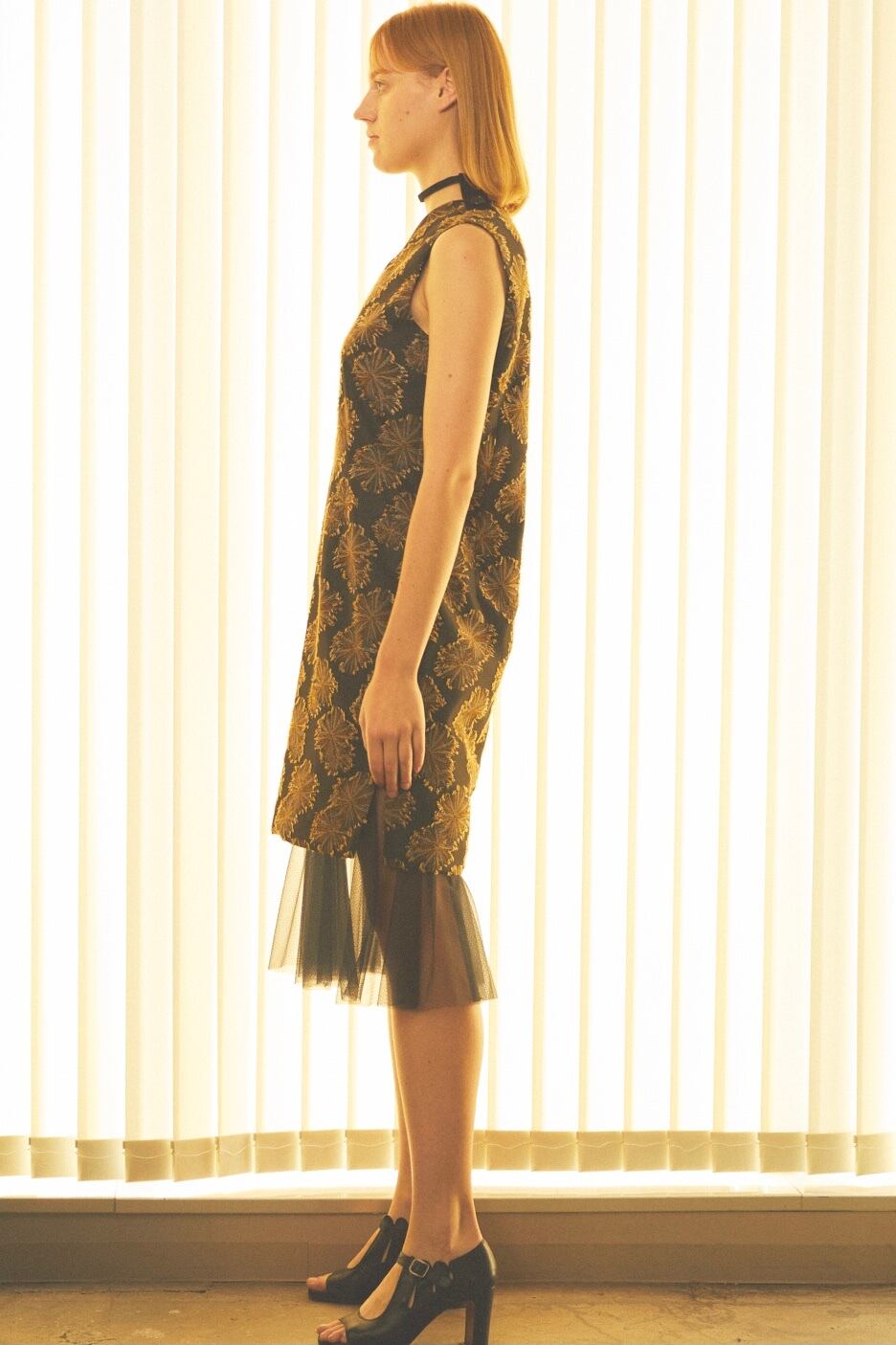 立体感のある大花柄のジャカード織りの生地を使用したラグジュアリーなワンピースです。