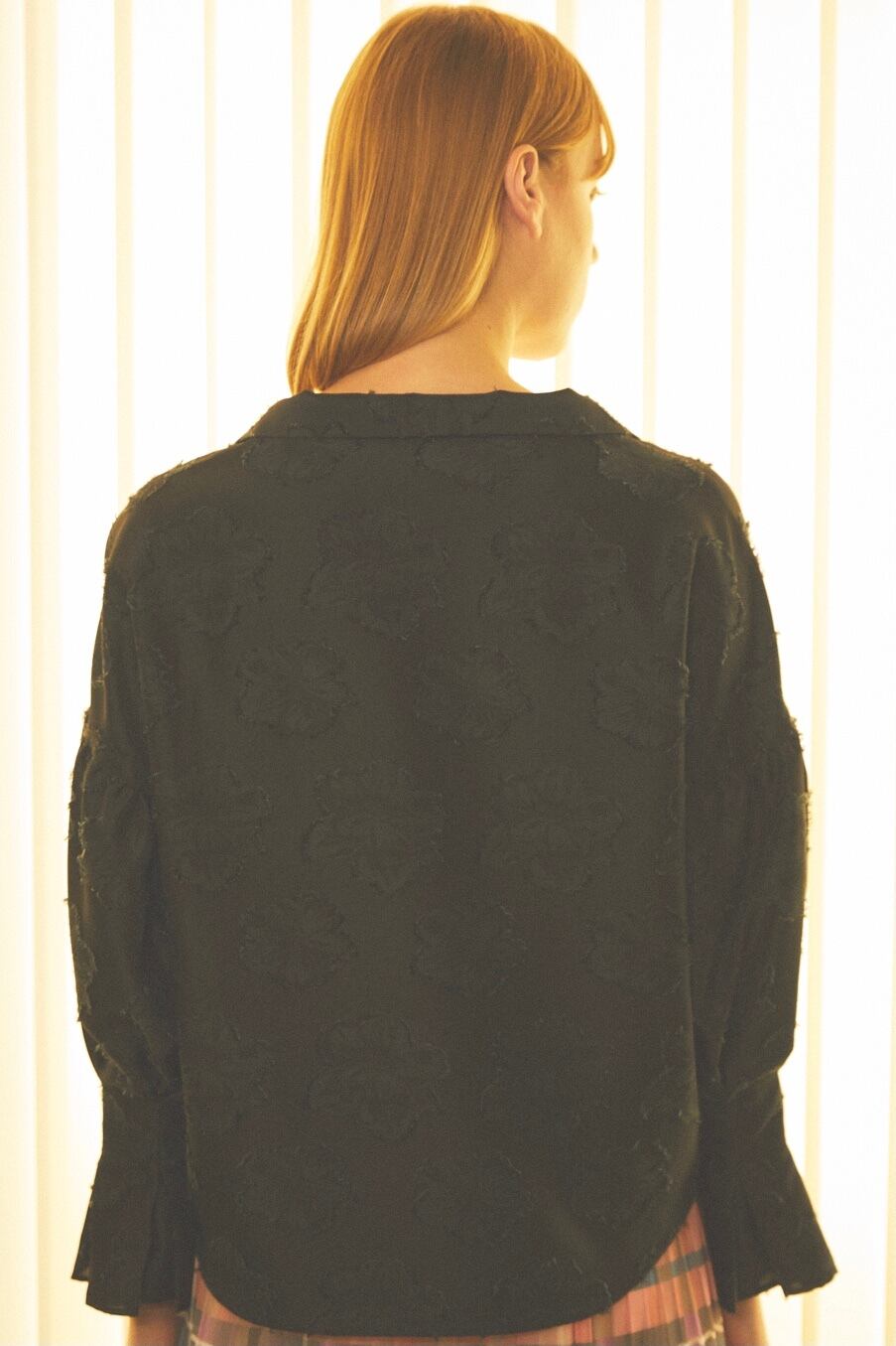 立体感のある大花柄のジャカード織りの生地を使用したラグジュアリーなブラウスです。